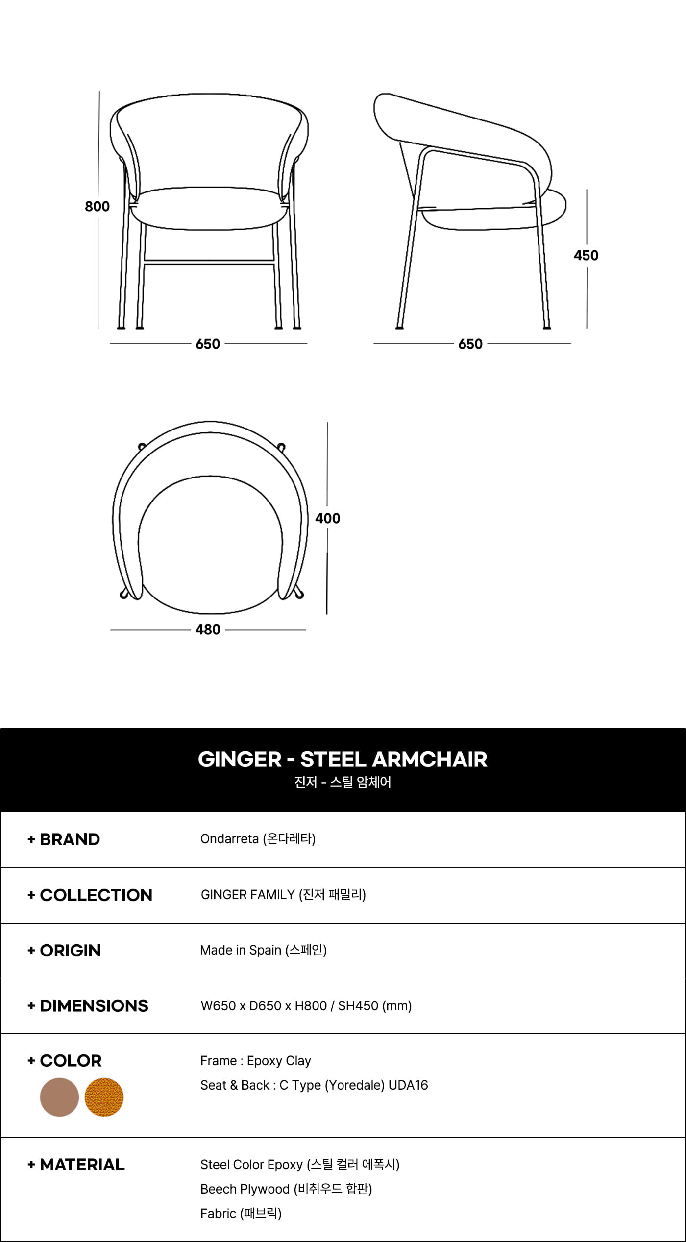 <온다레타> 진저우드 카페 레스토랑 호텔로비 카라멜스틸체어